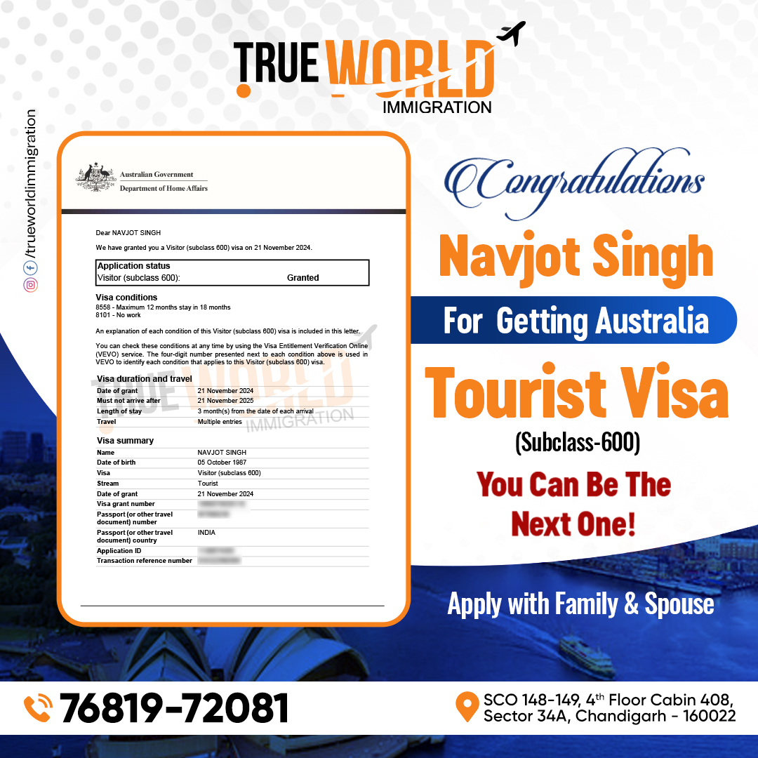 I got my australia tourist Visa.. this consultancy staff is very supportive,, Special thanks to shagun mam........